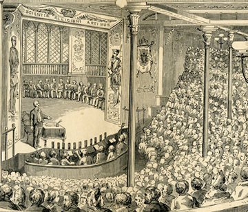 L’amphithéâtre du Gesù est une des plus anciennes salles de spectacle à Montréal. Elle fut ouverte le 10 juillet 1865. À l’époque, elle possède près de 1200 places, un plateau tournant et une fosse d’orchestre. Elle a comme vocation première de servir de salle académique au Collège Sainte-Marie, un institut d’enseignement fondé par les Jésuites.