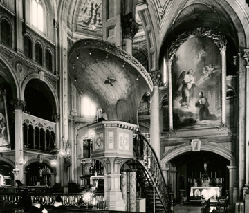 L’église, sous laquelle se trouve l’amphithéâtre, sert quant à elle de chapelle au grand établissement (1848 à 1969). C’est en 1923 que l’Amphithéâtre s’ouvre à la présentation de spectacles destinés au grand public. La troupe des Anciens du Gesù, à l’époque dirigée par le père Joseph Paré, voit l’éclosion de jeunes comédiens qui deviendront des personnalités importantes de la scène artistique, politique et sociale du Québec, notamment Hector Charland et Paul Langlais.