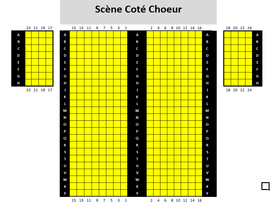 Capacité de 448 places — Bancs fixes (admission générale ou sièges numérotés)